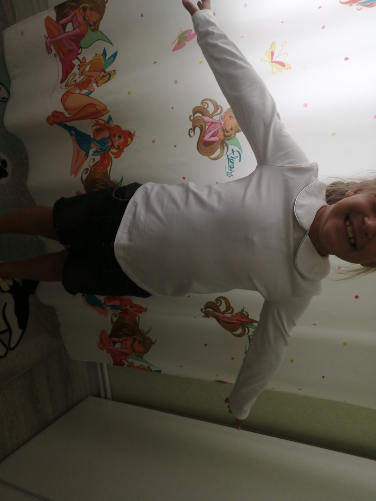 Брала на дни в школу когда физ-ра,чтобы не застегивали кучу пуговиц)))) качество -соответствует цене. По размеру на 140 ,128-взяла 146,134-как раз.